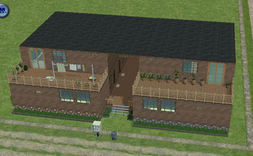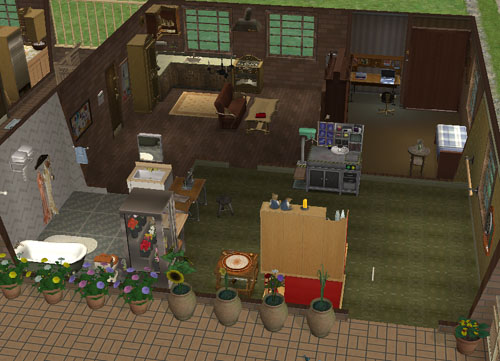 とりあえず以前のプレー日記にも登場してた、おっさんの事務所のあるアパートを作ってみました。そこそこ都会にあるという設定なんで、結構近代的でス。下4部屋、上2部屋構成。上の階は家具までみっちり詰め込んでみましたが、下の階は体力が尽きて最低限の設備しか付けておりませぬ。