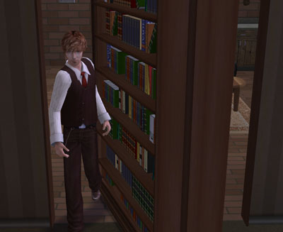 さて。ネットサーフィンしてると、本棚の隠し扉の使い方が分からないという方がいたのでちょっと紹介をば。